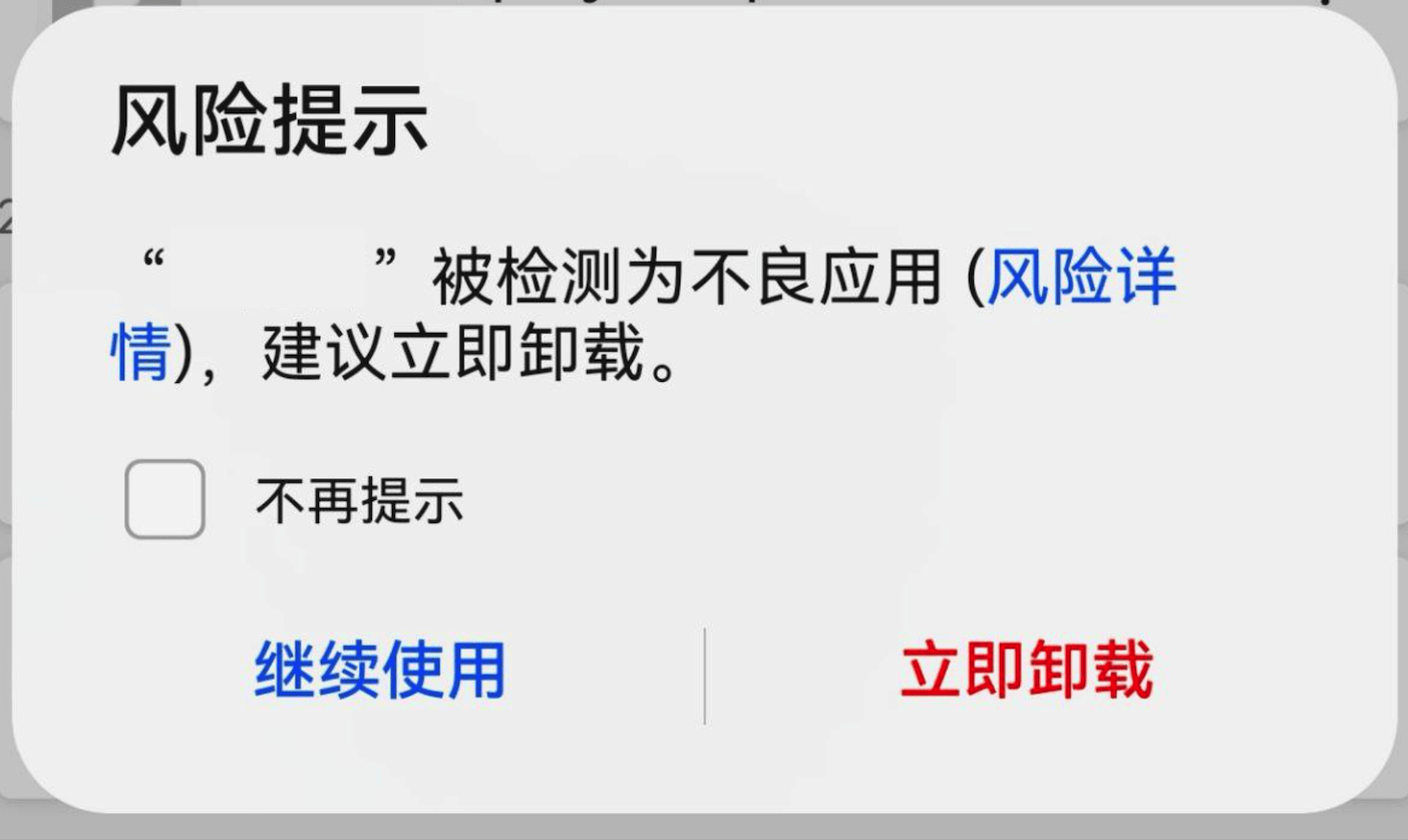 当应用出现以下风险提示时,请勾选不再提示,选择继续使用
