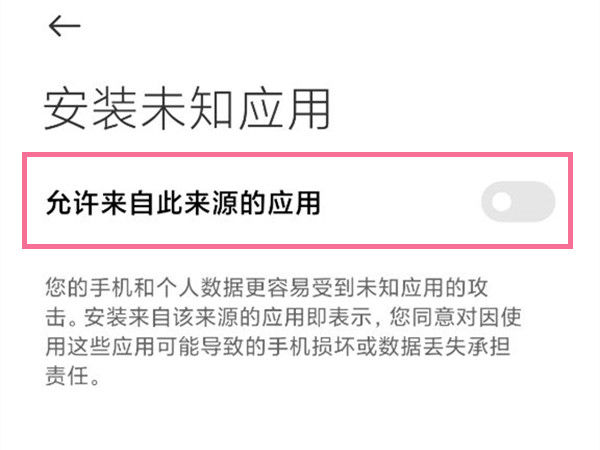 1.手机设置中搜索[安装未知应用],选择我们的应用后,开启[允许来自此来源的应用]